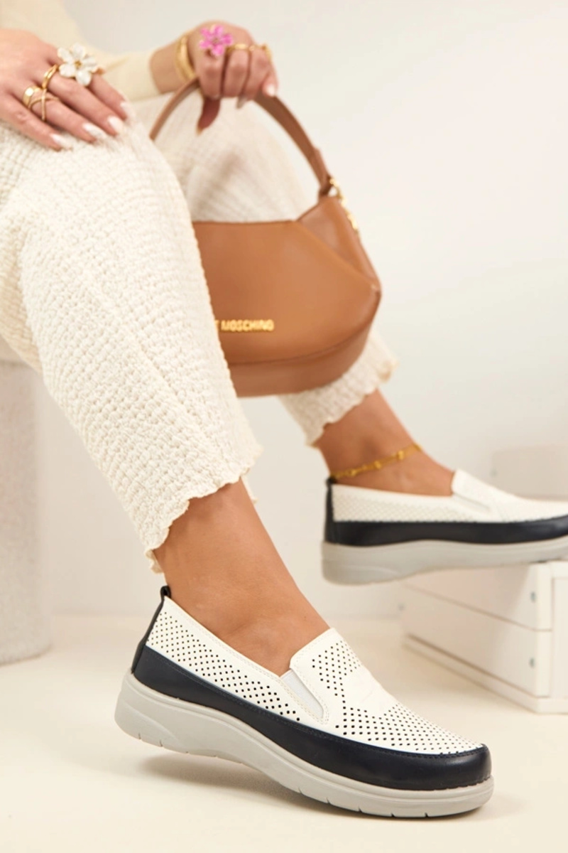 Aurelle valged tumesinised õhulised sissevõetavad poolsaapad