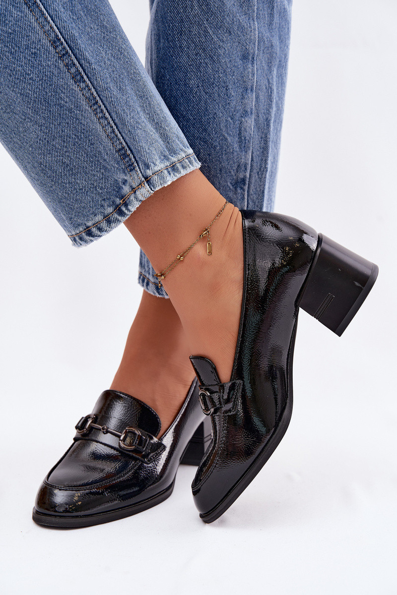 Läikivad naturaalnahast poolkingad naistele kontsaga Vinceza 18116 musta värvi