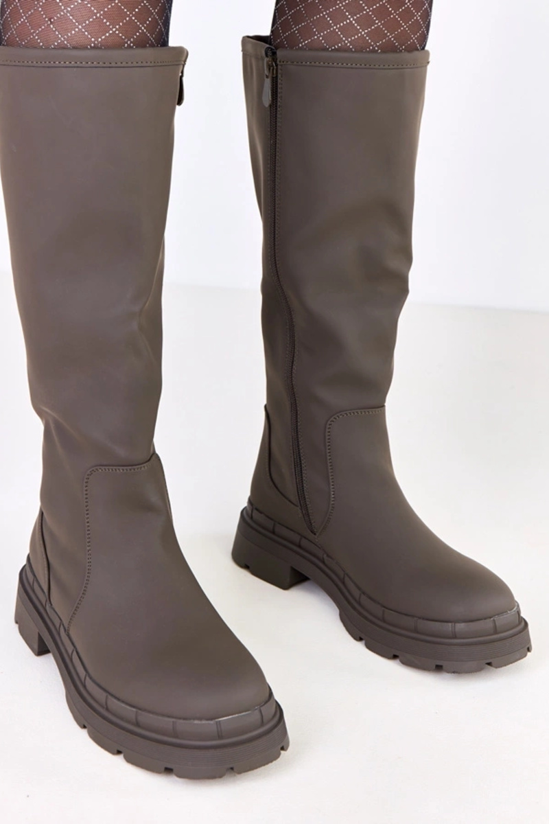 Rohelised matt sünteetilisest nahast pikad saapad Delita