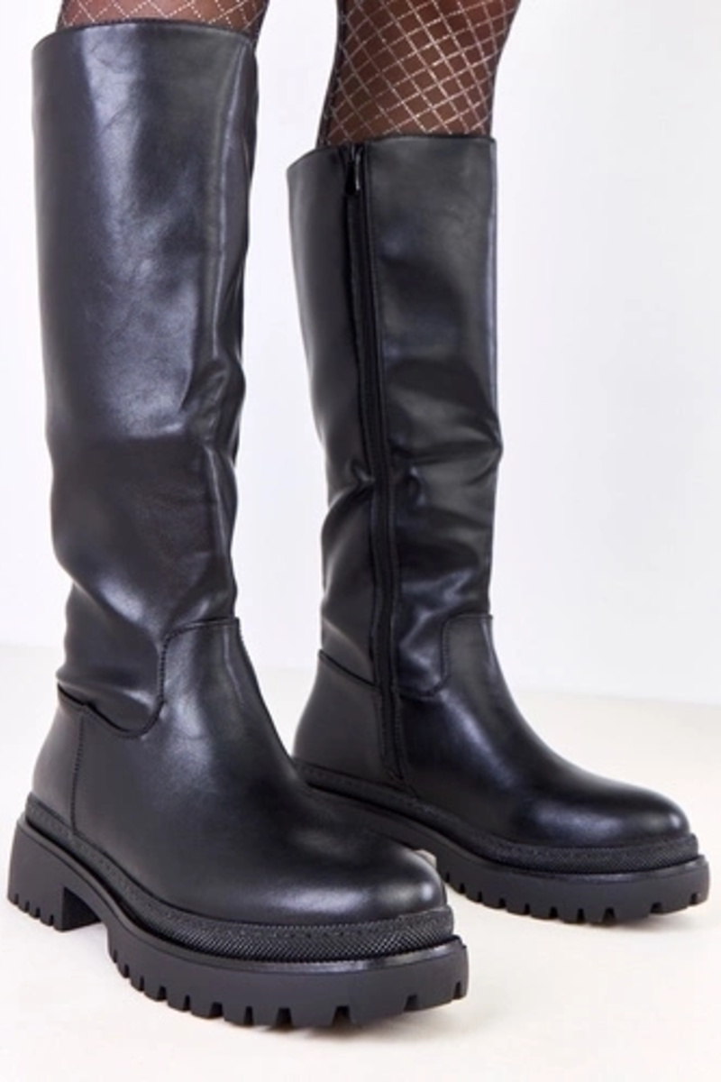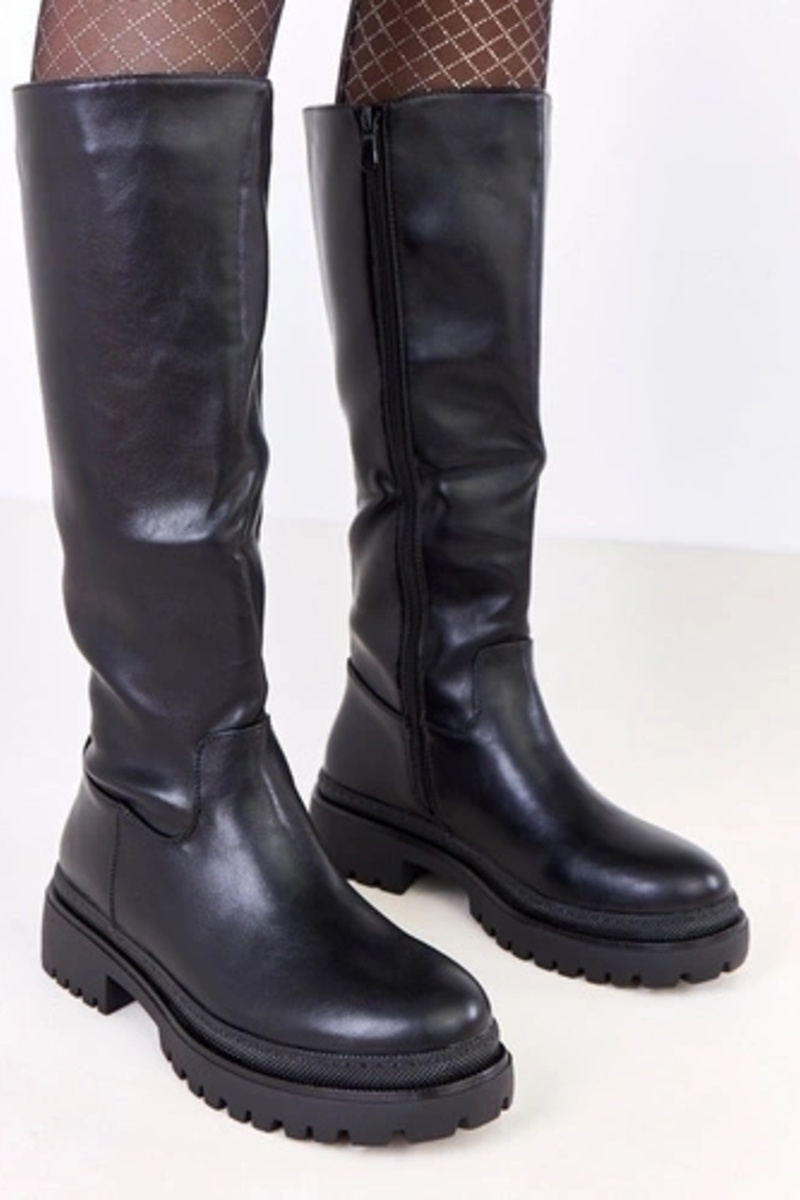 Mustad naiste sünteetilisest nahast pikad saapad Sameros
