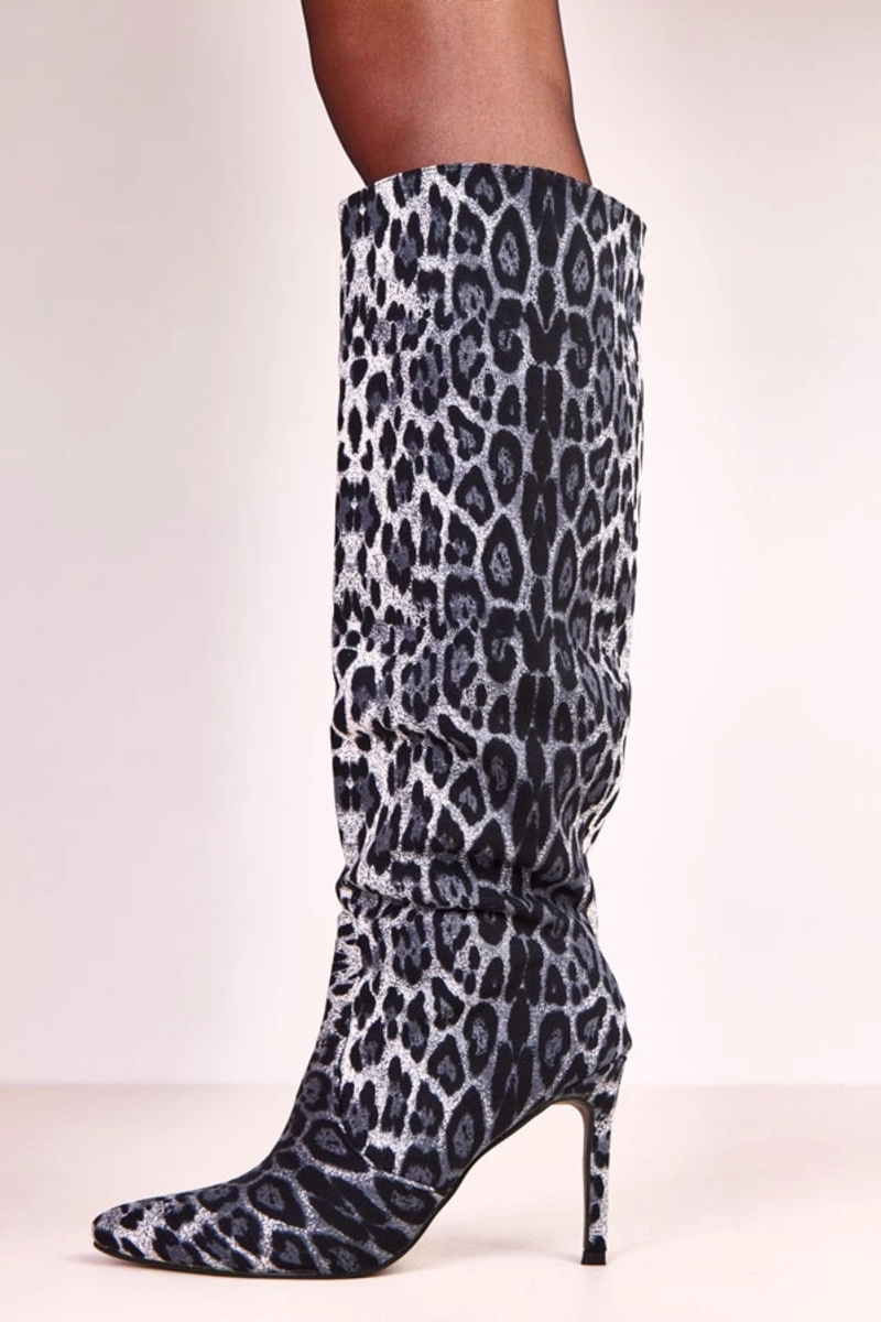 Mustad leopardimustrilised kõrged saapad õhukese kontsaga Adrienne