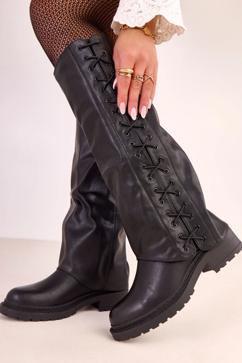 Elane mustad kõrged saapad eemaldatava varruka jaotusega
