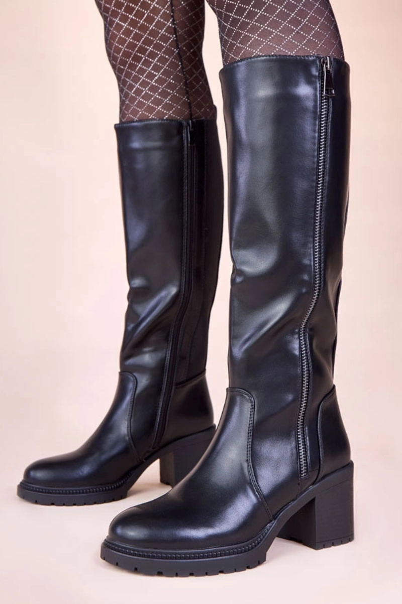 Mustad saapad kõrgel kontsal elastse sisetükiga Akia