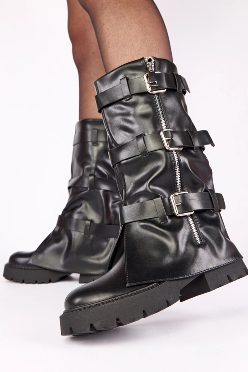 Musta platvormiga saapad ülespoole painutatud varbaga Colina