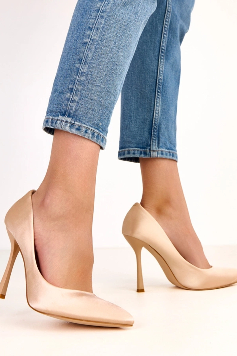 Beeži kõrge kontsaga kingad satiinist viimistlusega Cindy