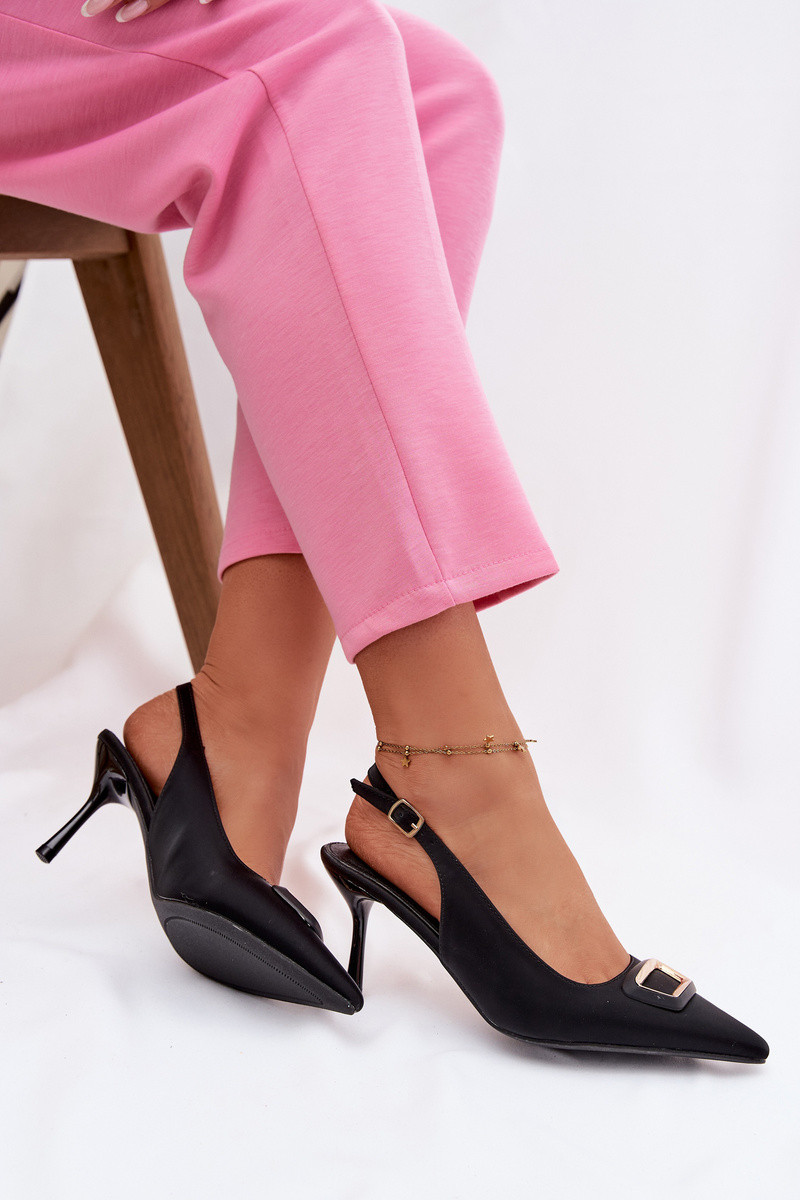 Naiste kõrge kontsaga sandaalid kaunistustega musta värvi Palerine