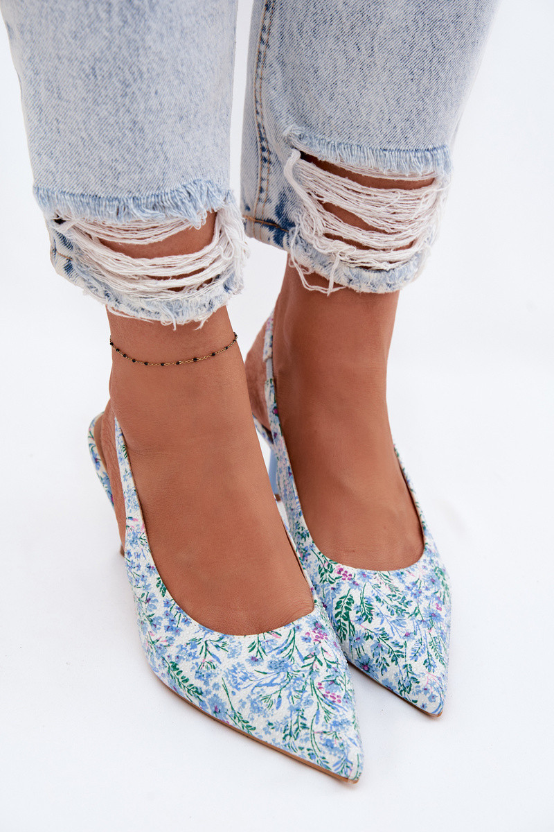 Dekoreeritud naiste sandaalid peenikeste kontsadega ja lilledega sinise värviga Olivelle
