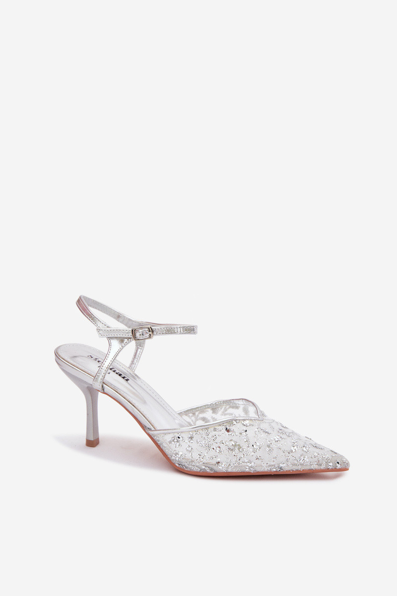 Võrk Pealistesandaalid kõrge jämeda kontsagaLäigeującym Zdobieniem Kuldset värvi Laria