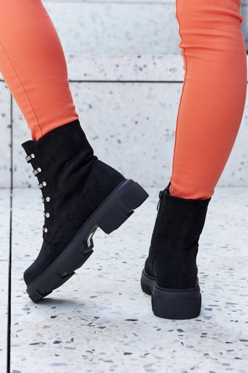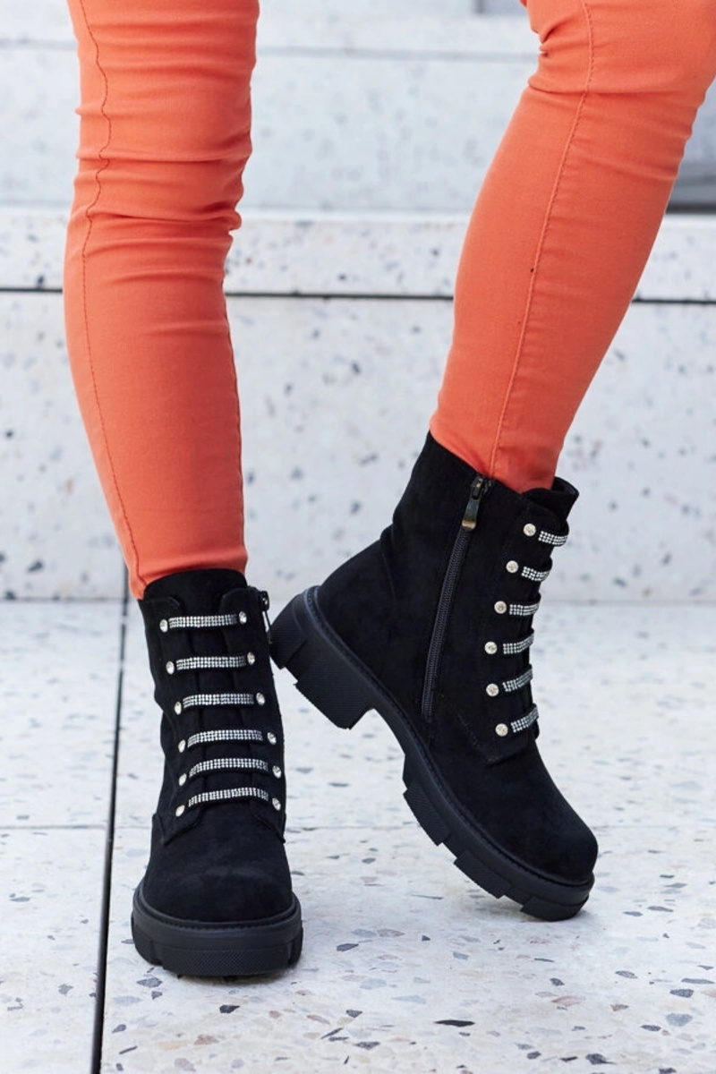 Mustad pahkluu saapad tsirkonitega, isoleeritud kunstnahast Sfaranda
