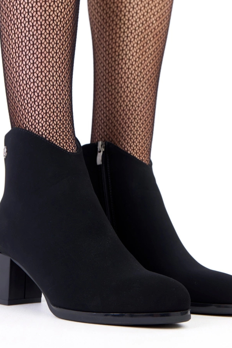 Mustad saapad peene ökoloogilise nahast kaunistusega Angelo