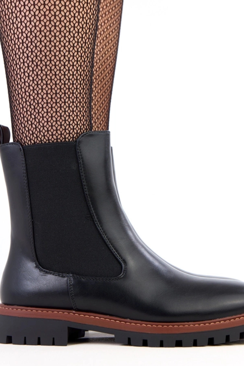 Mustad saapad lameda tallaga ja elastse sisseõmblusega Terrami