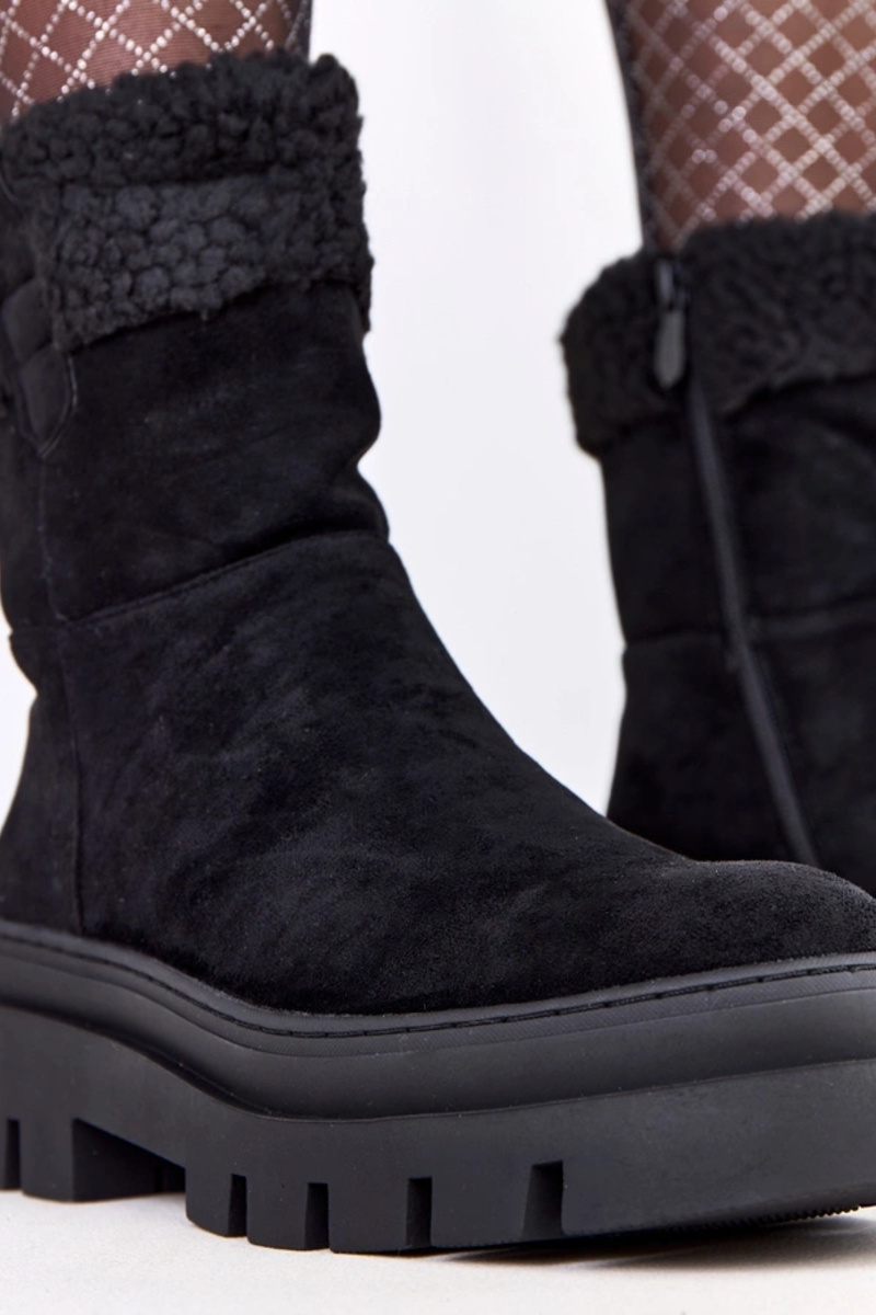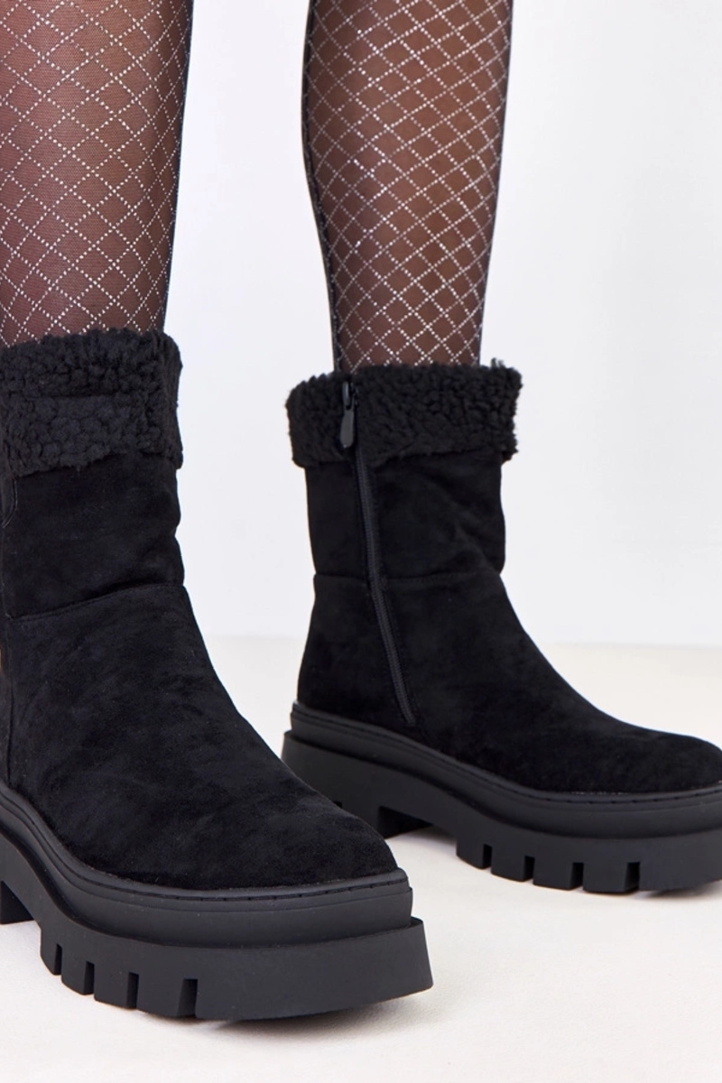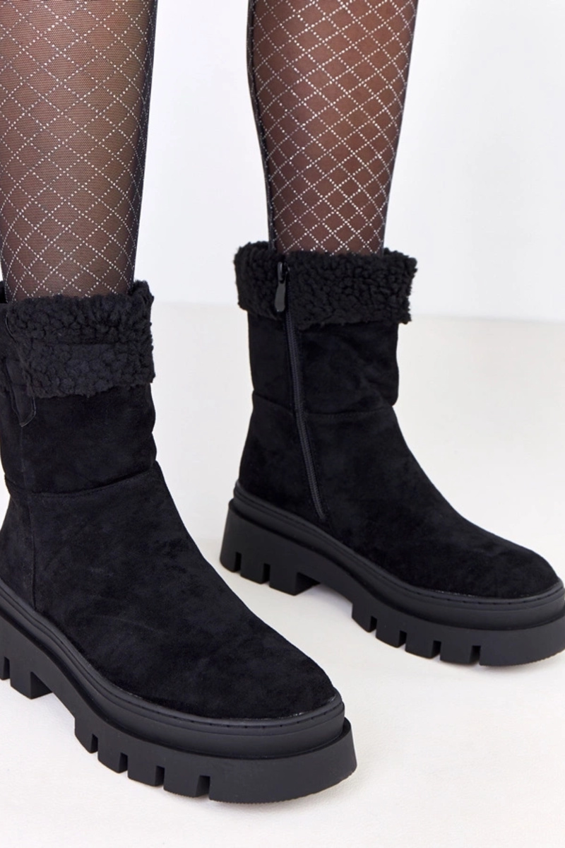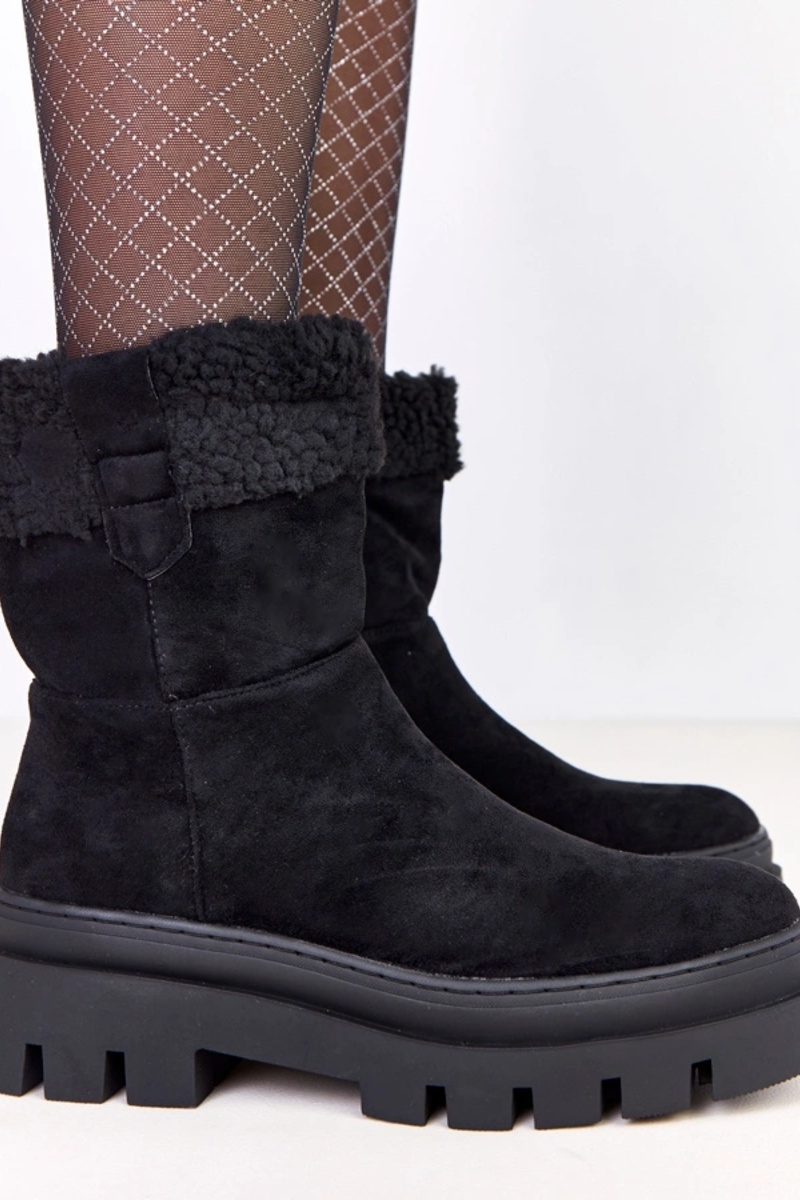 Mustad saapad karusnahaga massiivsel tallal Kalerej