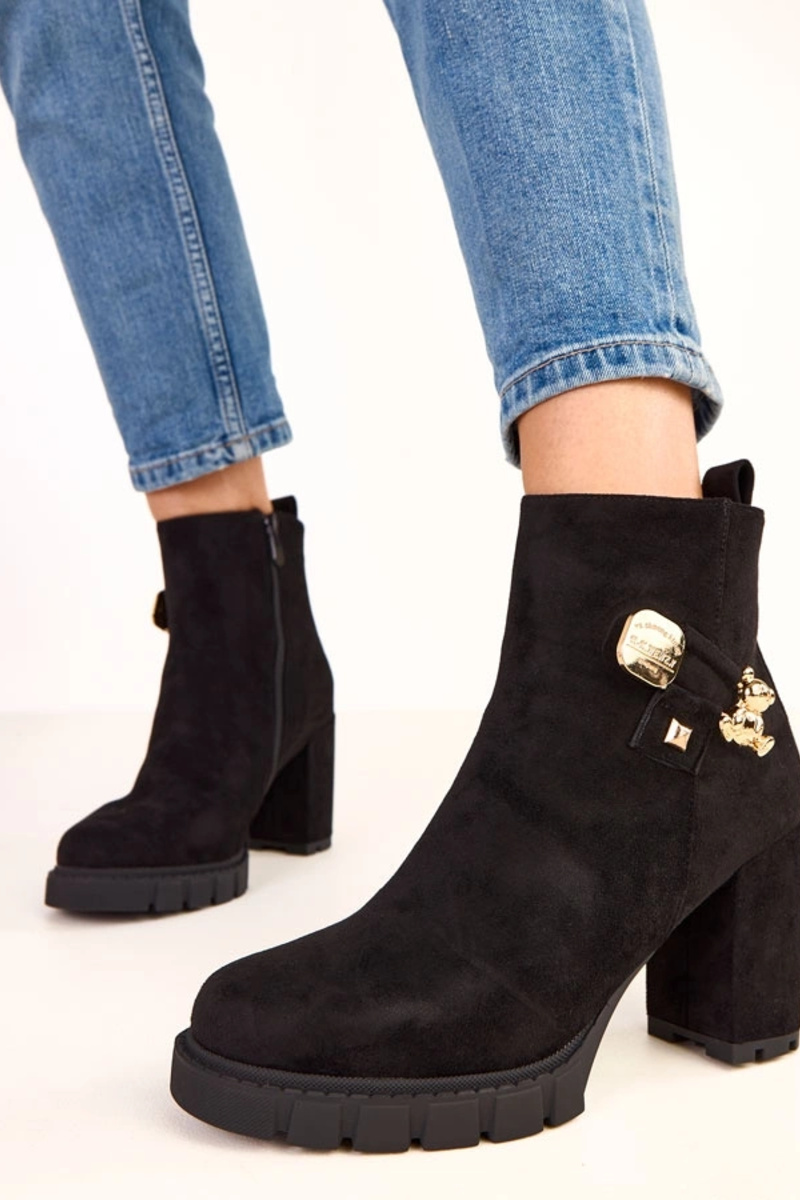 Mustad poolsaapad kontsaga kuldse karu kaunistusega Naste
