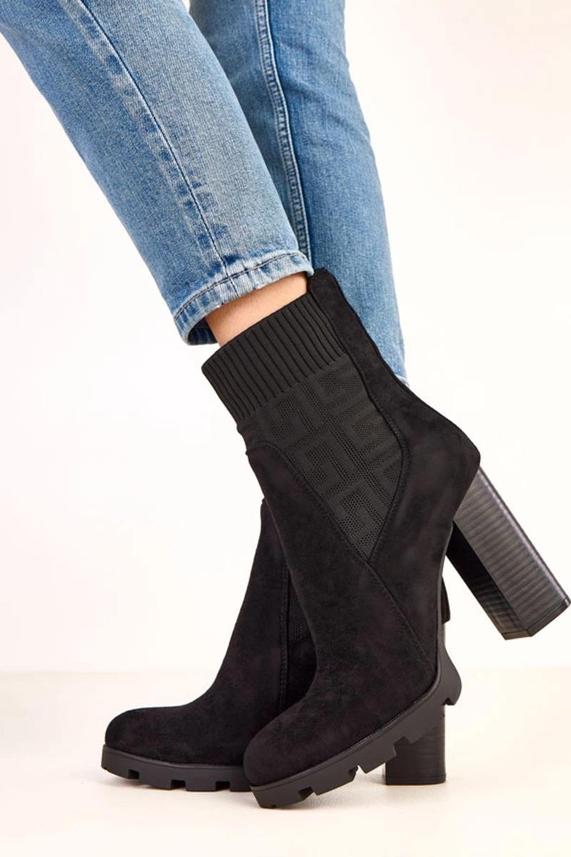 Mustad saapad paksul kontsal elastse õmblusega Vesira