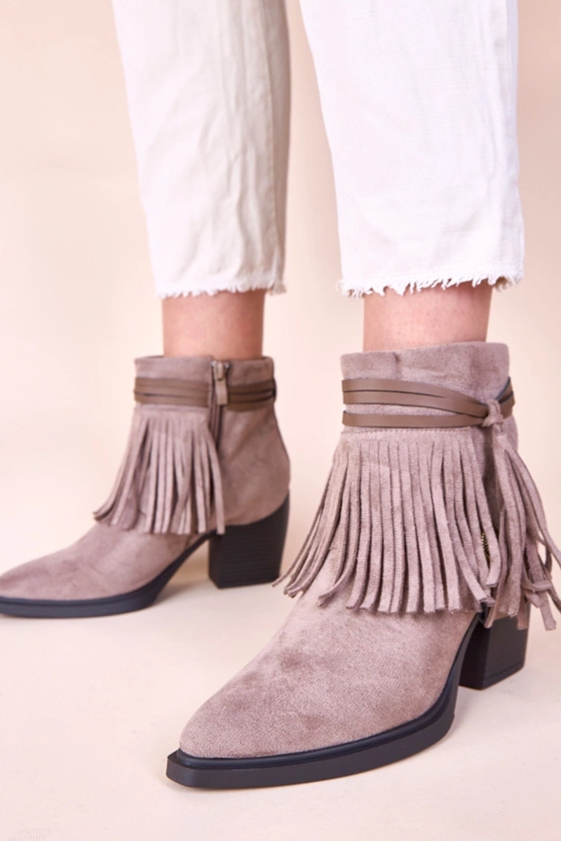Tumedad beežid saapad kontsaga ponnikutega Mulan