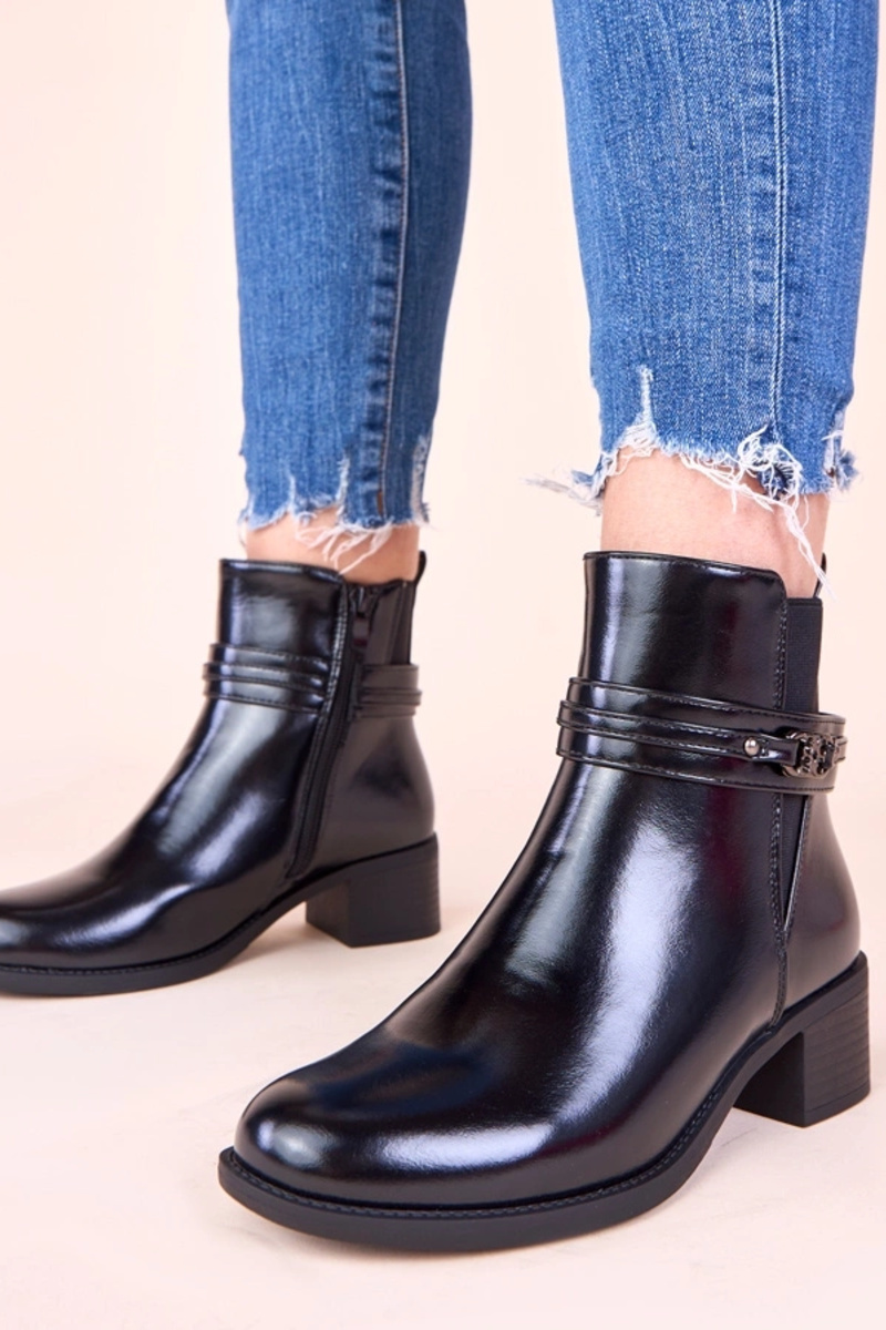 Mustad saapad kõrgel kontsil dekoratiivse rihmaga Lilua