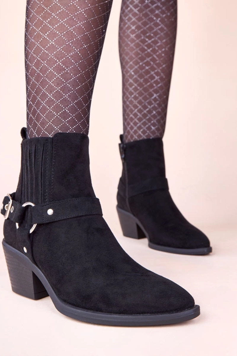 Mustad saapad kõrgel kontsil dekoratiivsete pandlitega Ritama