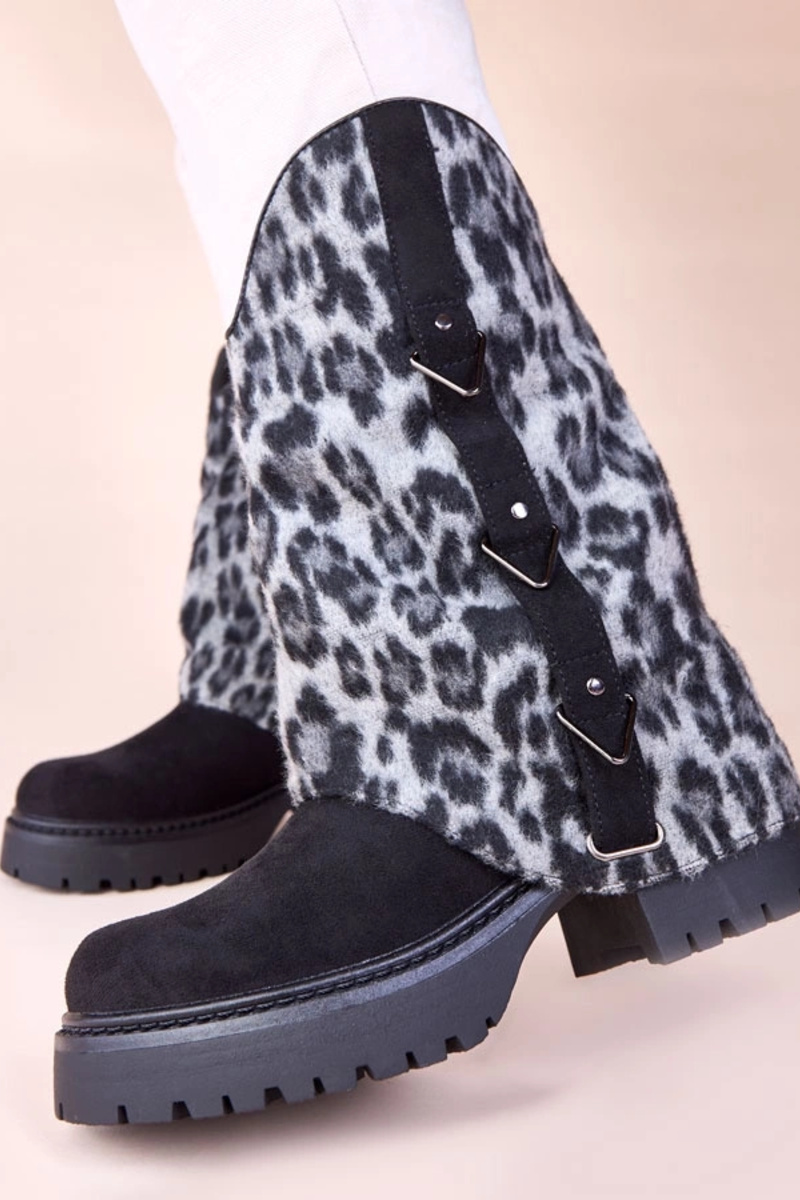 Mustad saapad tiigri mustriga ümber mähitud varsiga Kaylia