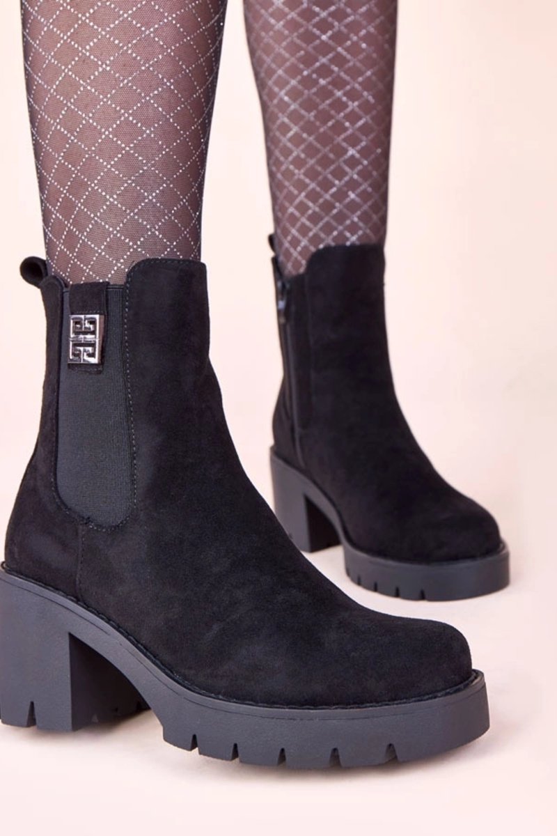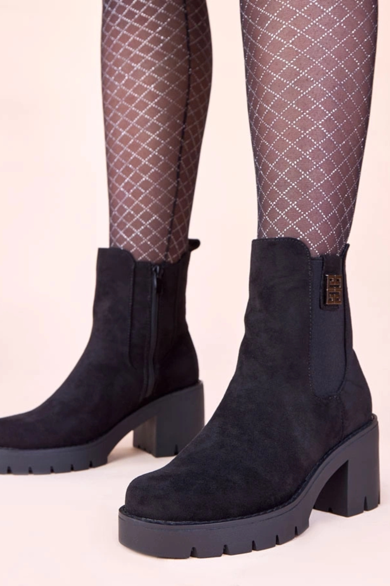 Mustad saapad kõrgel kontsal elastse sisetükiga Stilla
