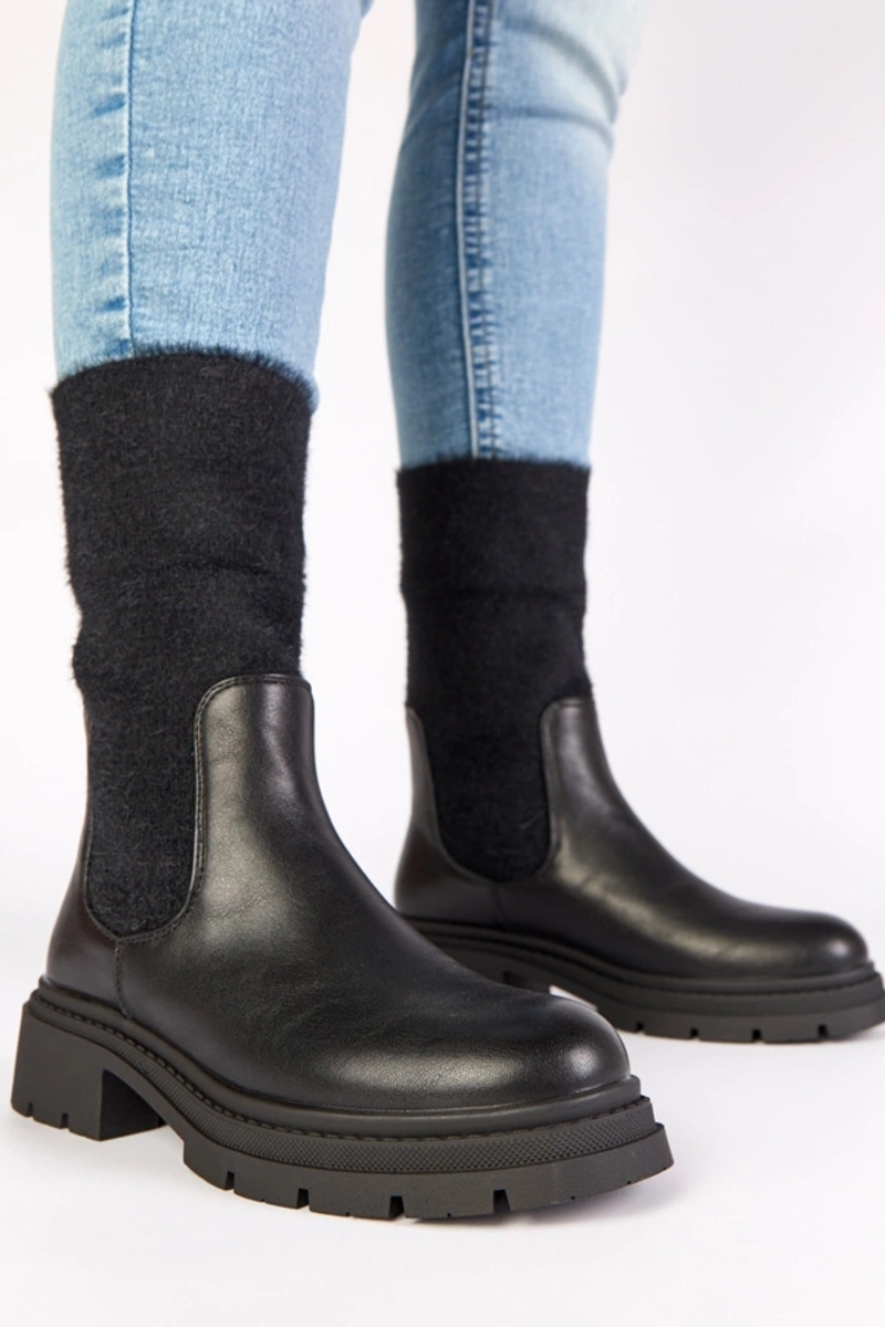 Mustad saapad elastse sisetugedega ja dekoratiivse varruga Evelyn