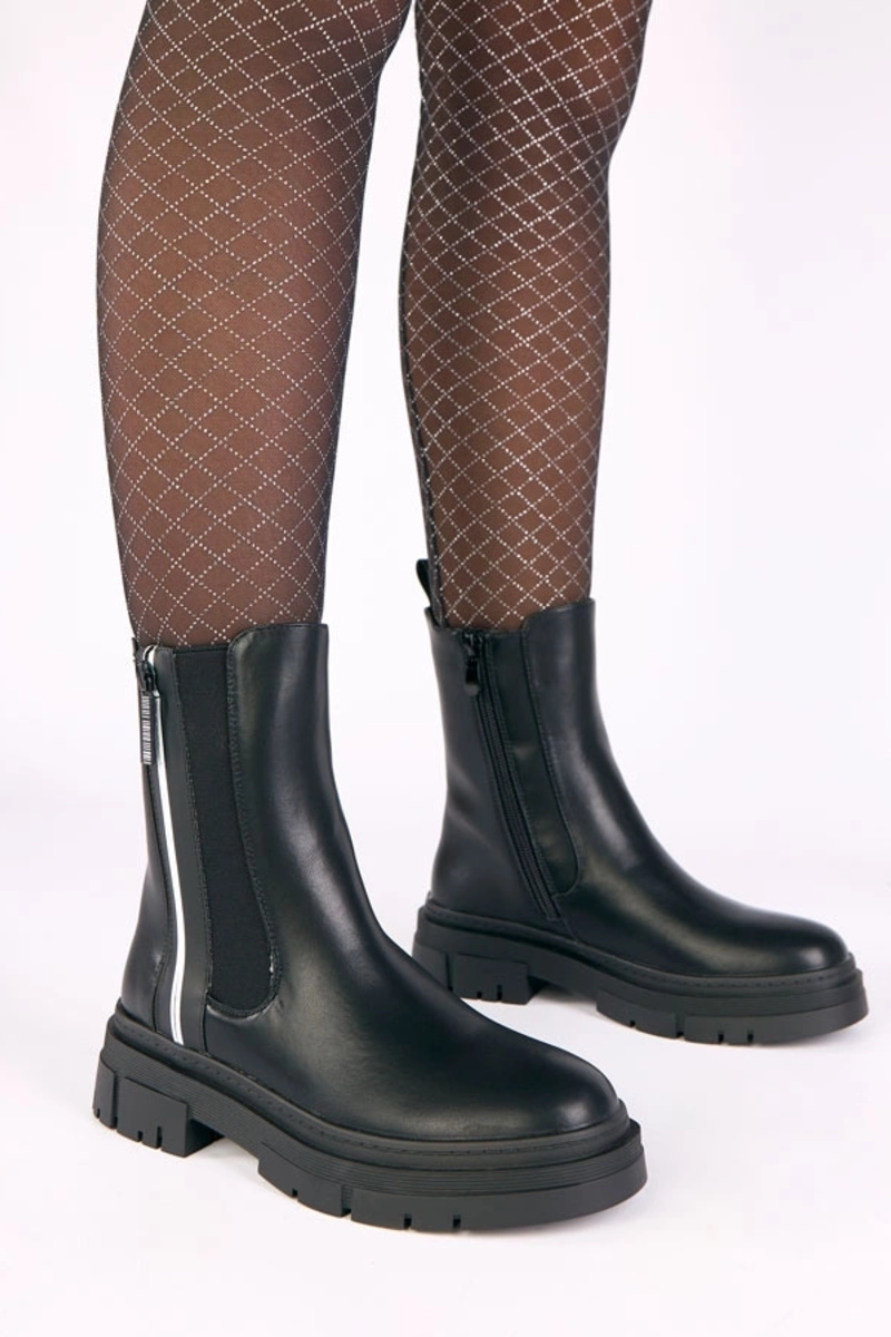 Mustad platvormsaapad dekoratiivse tõmblukuga Luisa