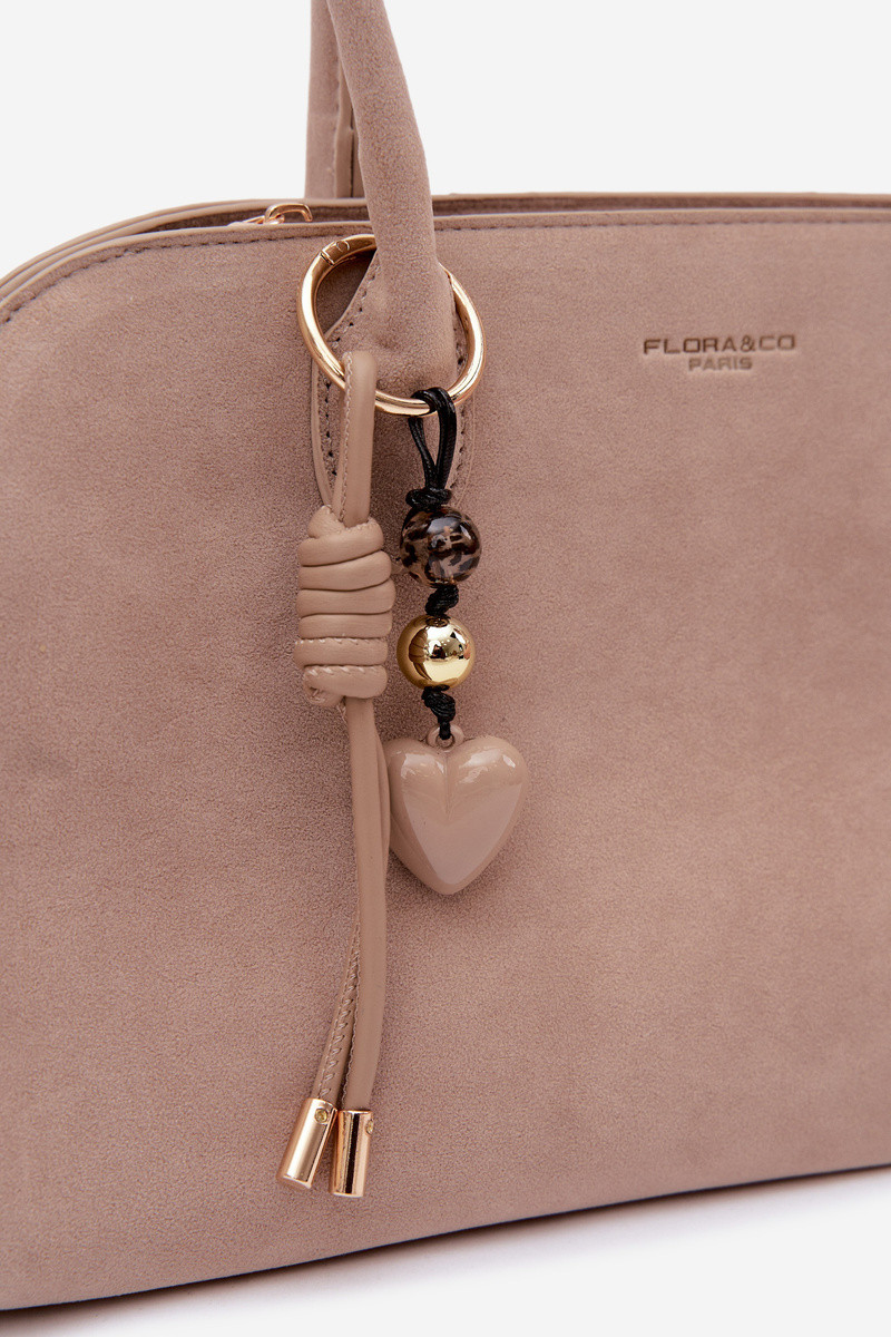 Violette kunstnahast kott riputusega ja pandlatega heleda liivakarva