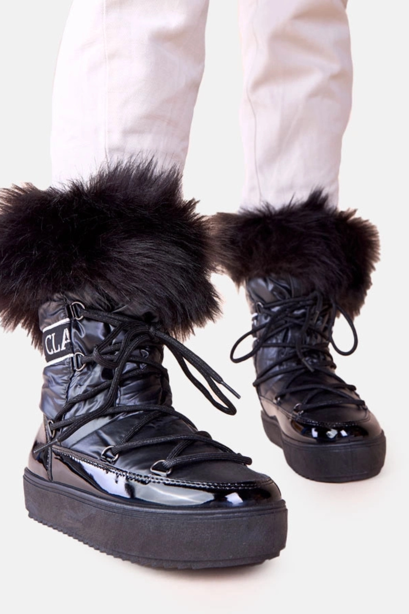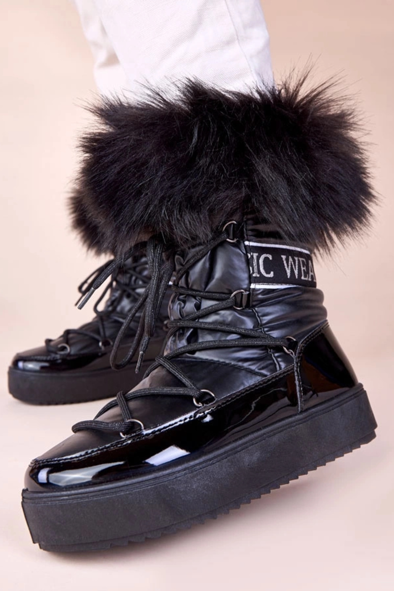 Mustad nööriga kinnitatavad lumesaapad karusnahaga Alison