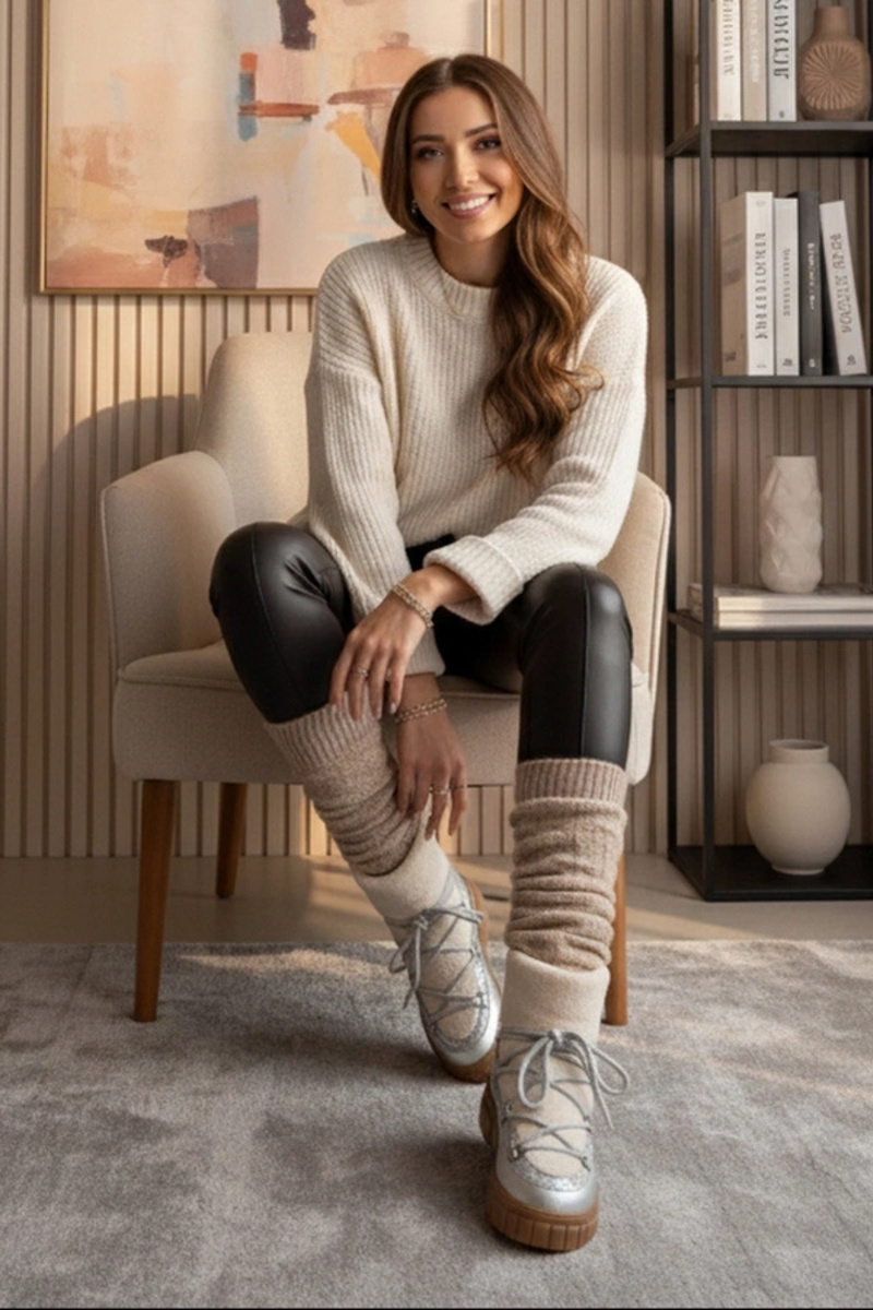 Hõbedased soe lume saapad karusnahaga ja sädelevate detailidega Esmee