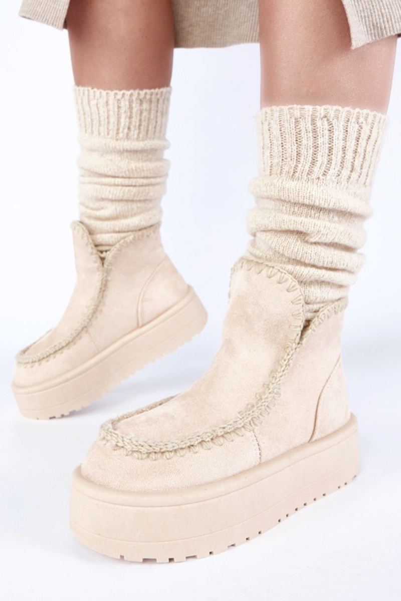 Heledat kreemikat lumesaapad platvormil dekoratiivsete õmblustega Alwena
