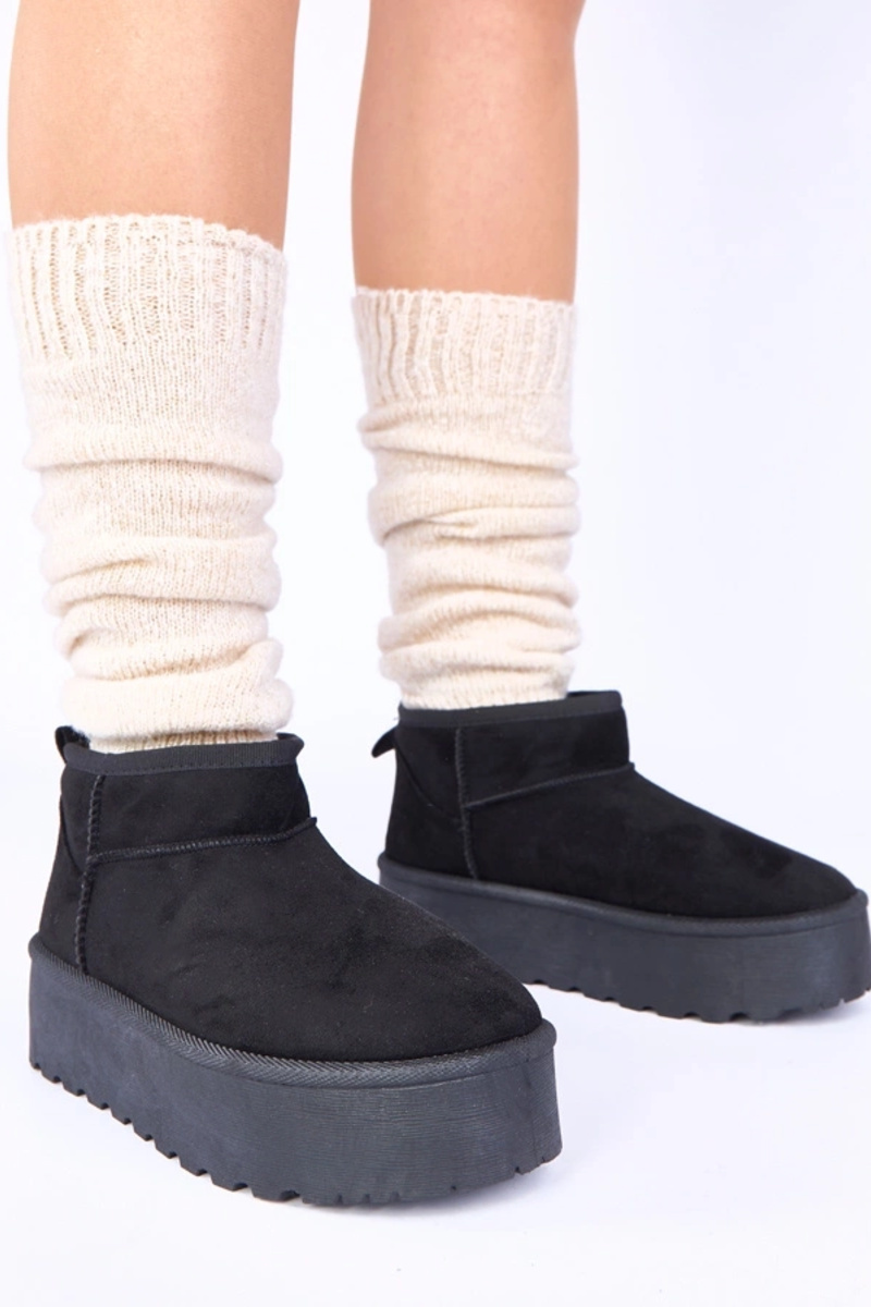 Mustad platvormiga lume saapad soojustatud karvaga Mouna