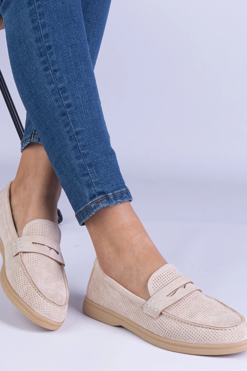 Kreemi värvi klassikalised avatud mustriga mokasiinid kunstnahast Argossa