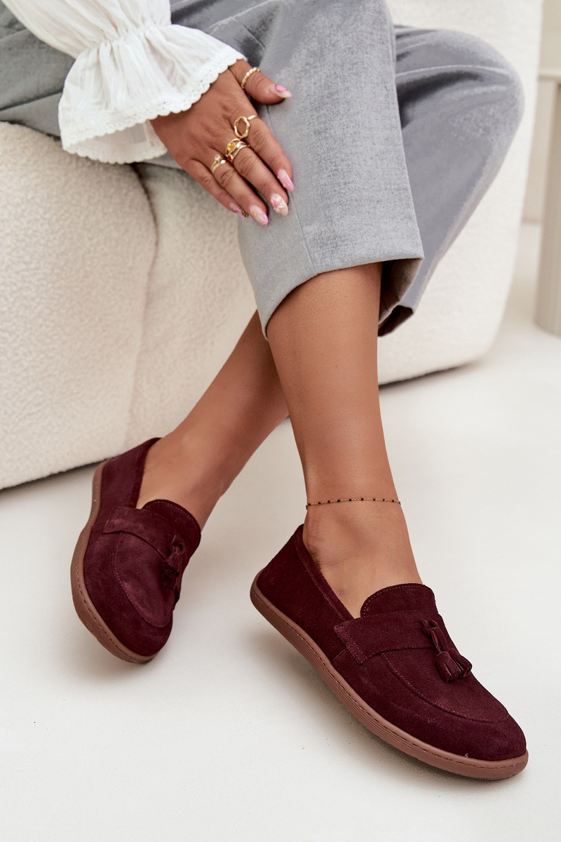 Nahast sametist mokasiinid "Barefoot" tüüpi Zazoo 322 bordoopunane