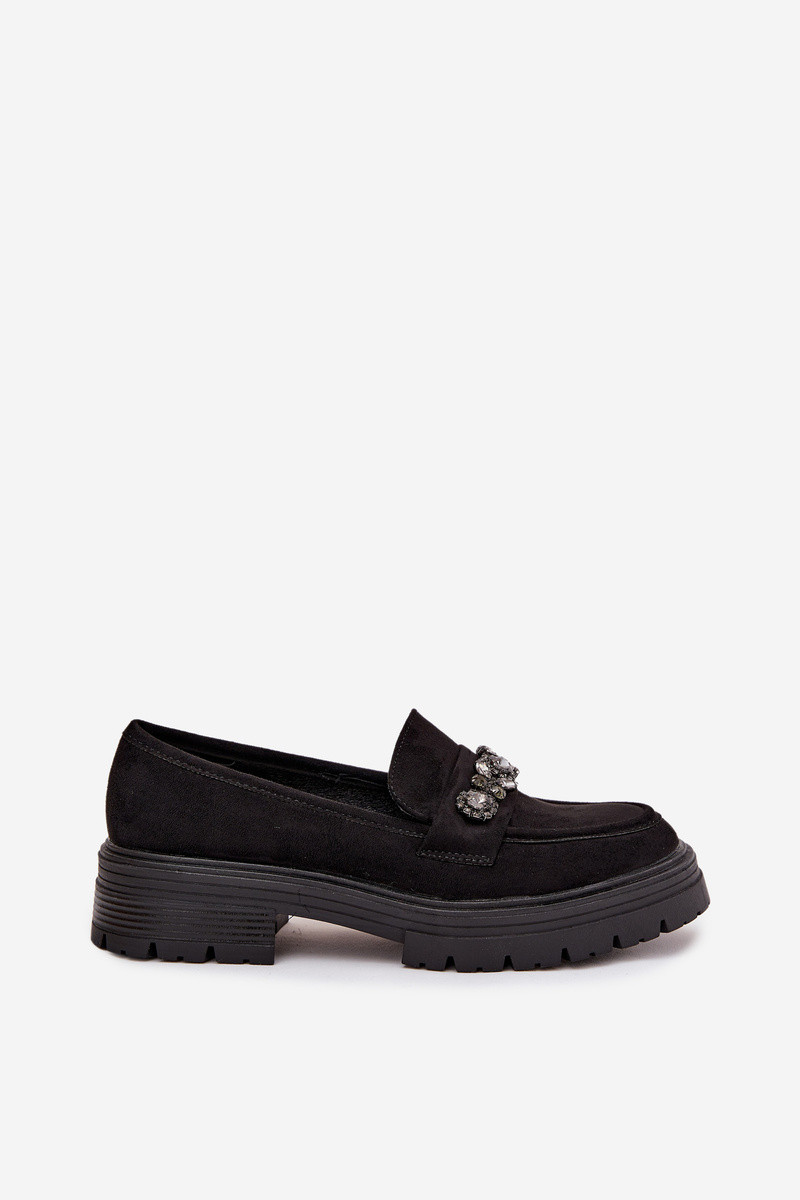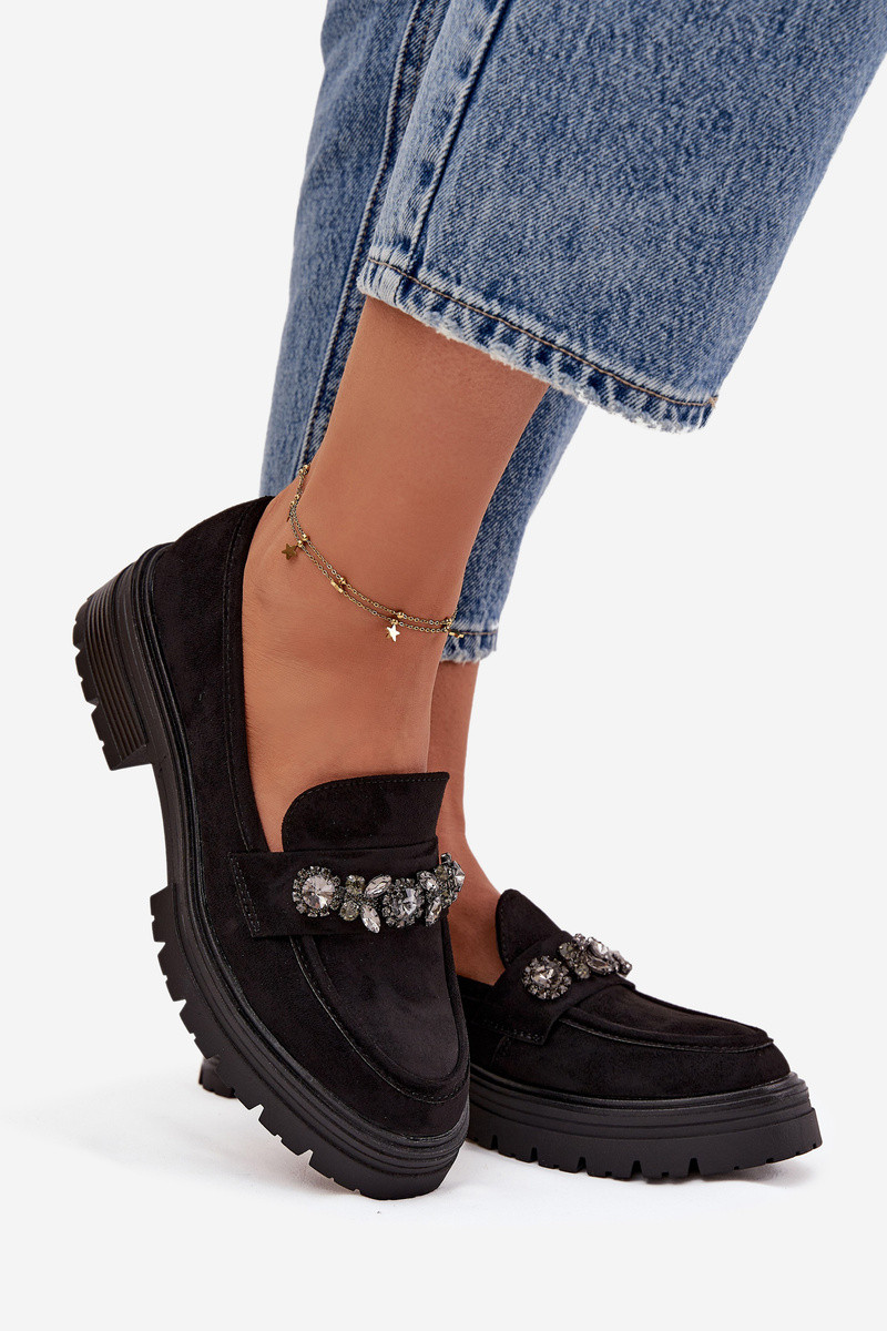 Naiste mokassiinid sädelevate aukudega kunstnahast, musta värvi Lavisse