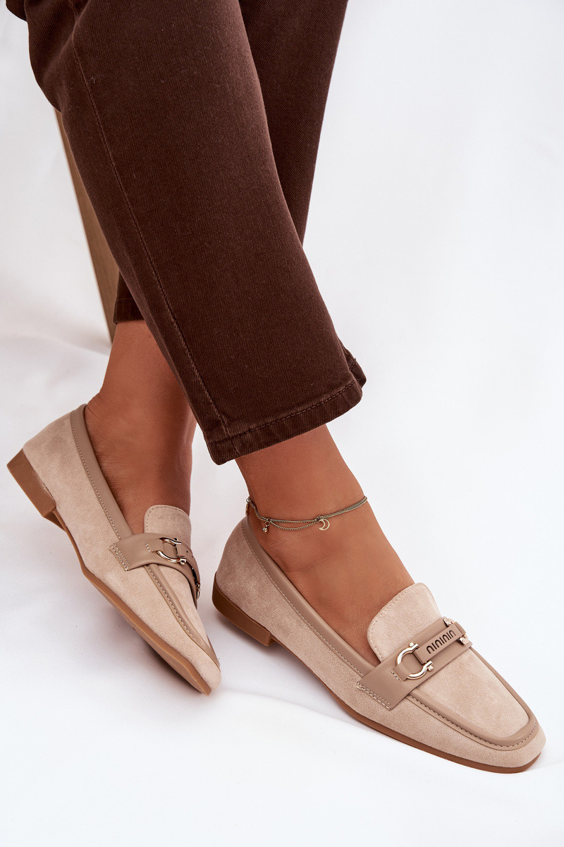 Naistelised beežid mokasiinid kaunistustega „Evelora”