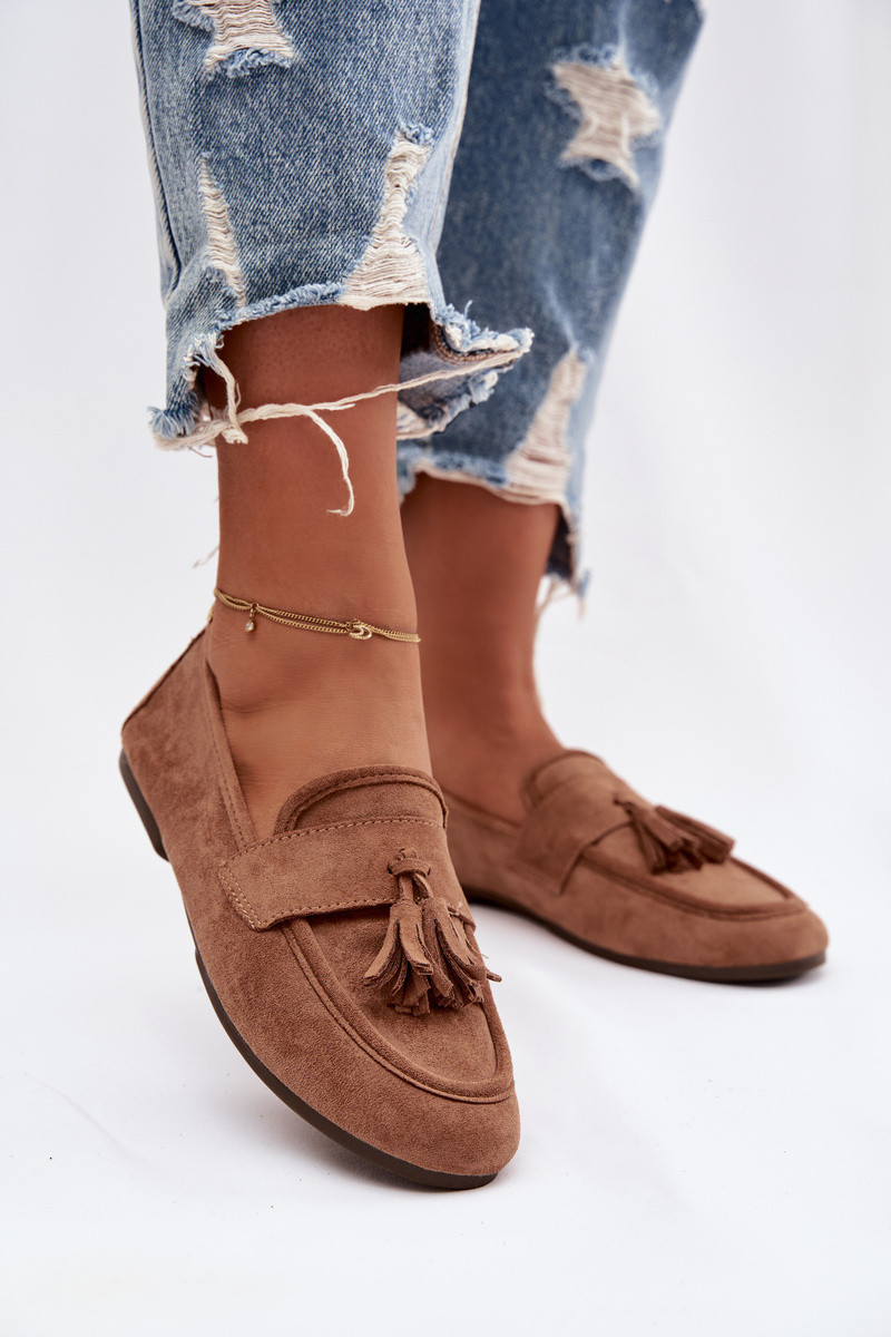 Naistel pruunid mokasiinid tupsudega Tai turirilisse