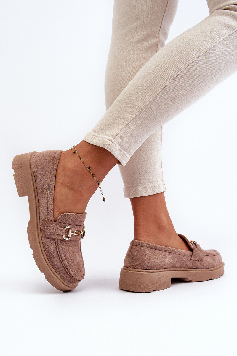 naiste mokassiinid Kuldse kaunistusega Eco Suedeosissee pruunid värvi Lighas