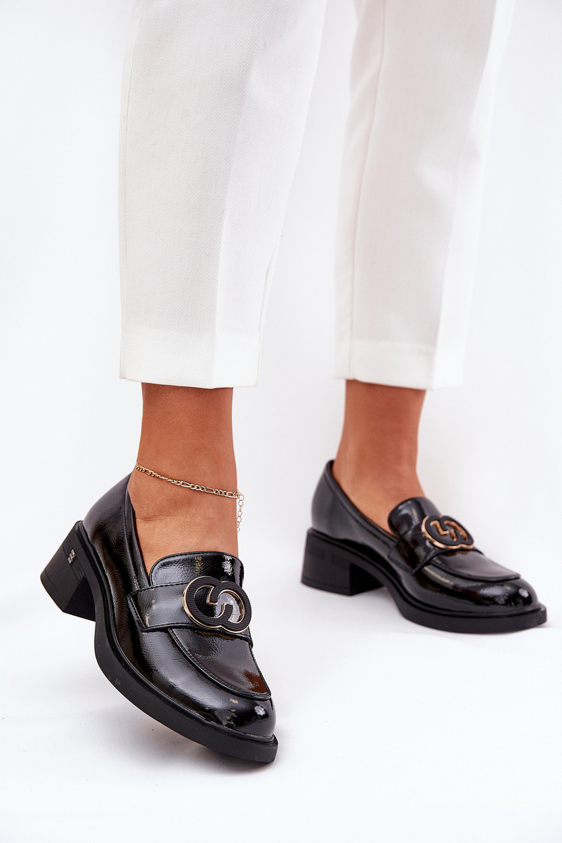 Läikivad nahast mokasiinid kontsaga Vinceza 18102 musta värvi