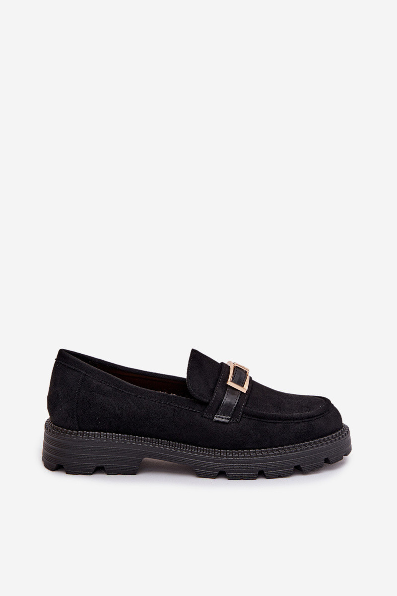 Mirelva mustad naiste mokasiinid kuldsete klambritega