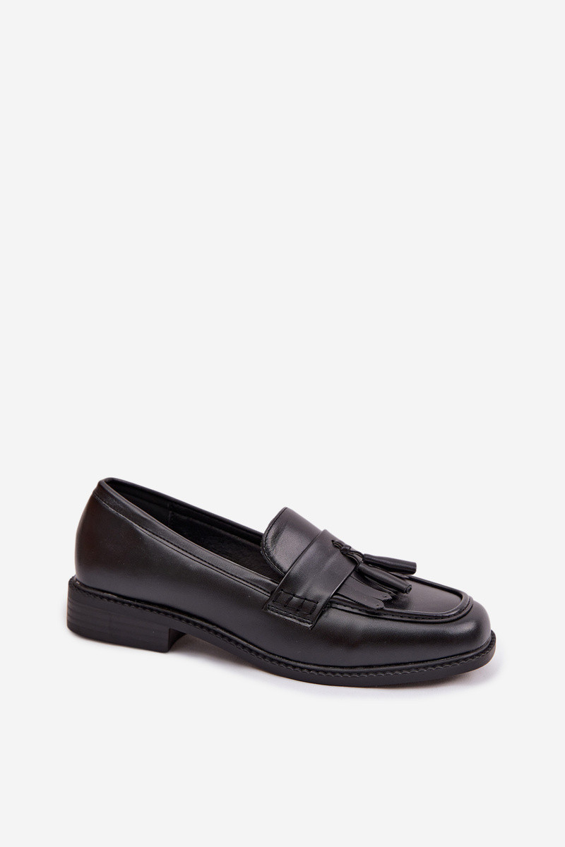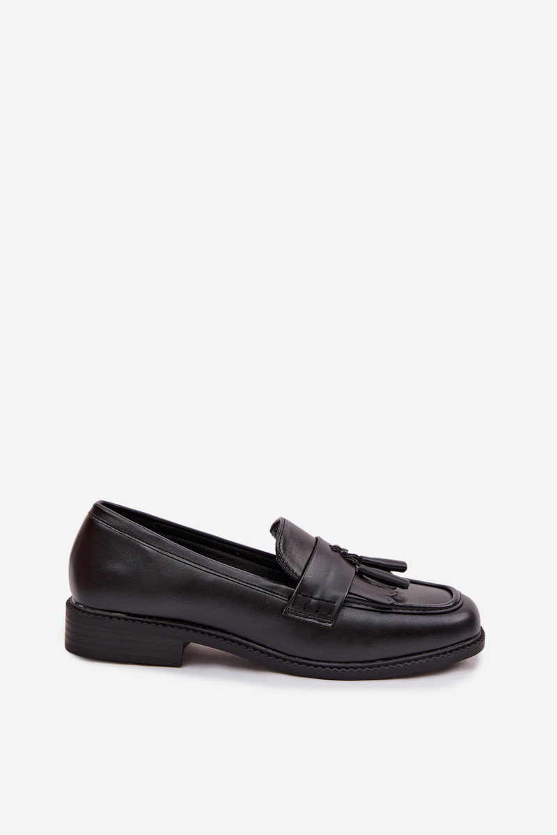 Naiste mokasiinid kunstnahast ja tutidega musta värvi Galera
