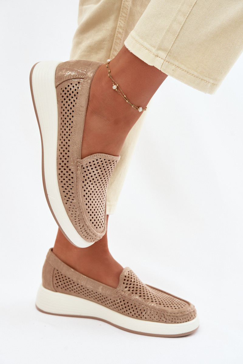 Naisten mokasiinid aukude elementidega Sergio Leone MK097H beež