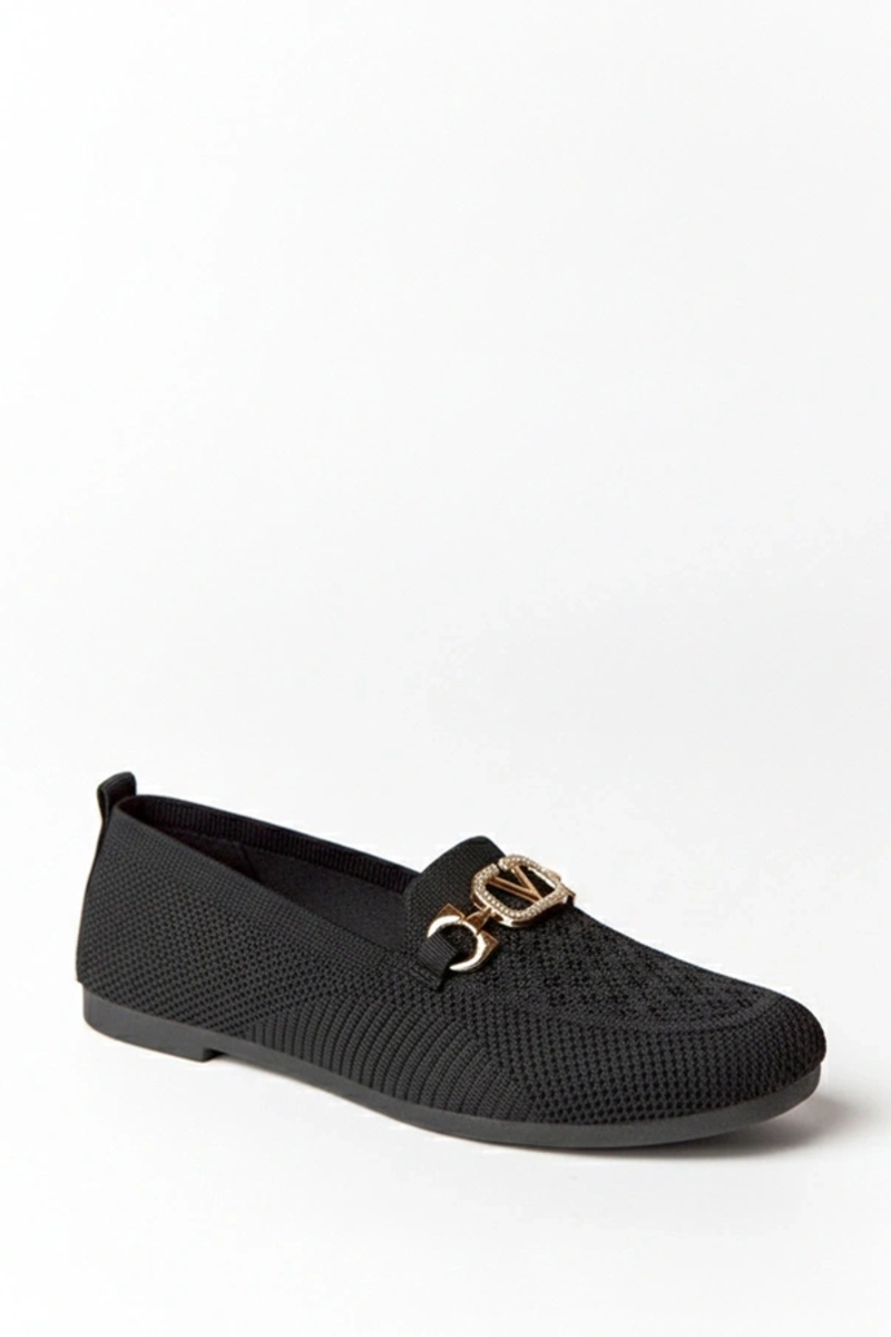 Mustad tekstiilsed mokasiinid kuldse kaunistusega Bianca
