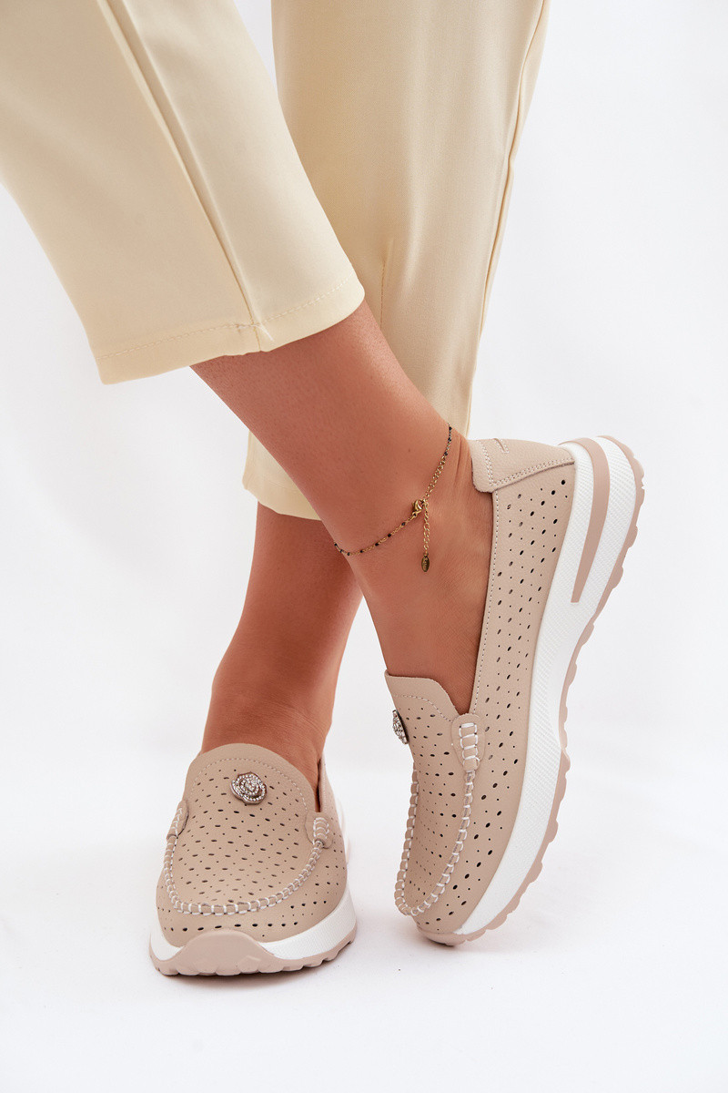 Ažuurne naiste mokassiinidPealturalnej Skóry beeži värvi Kemela