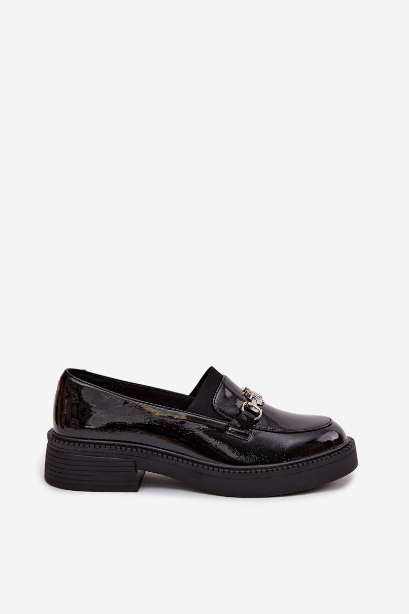Nahast lakitud naiste mokasiinid kaunistustega Vinceza 39985 must värv
