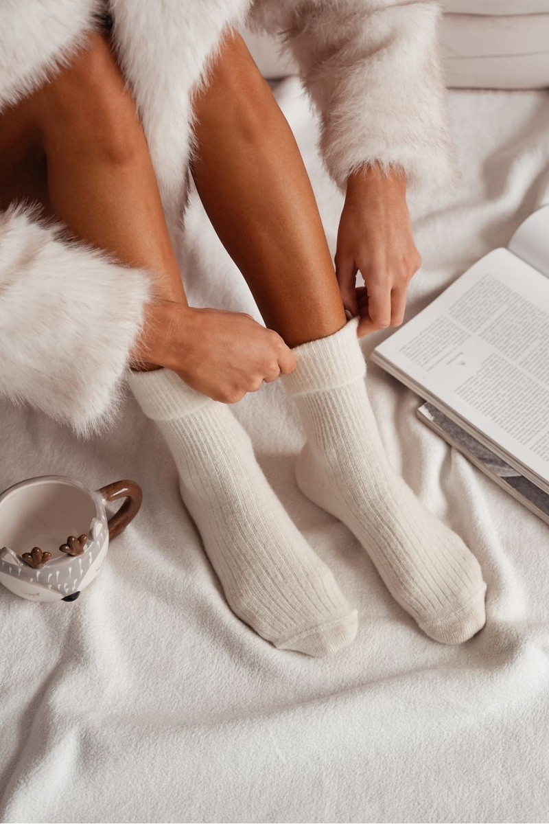 Naisterikka elevandiluust värvi linased sokid „Alpaka"