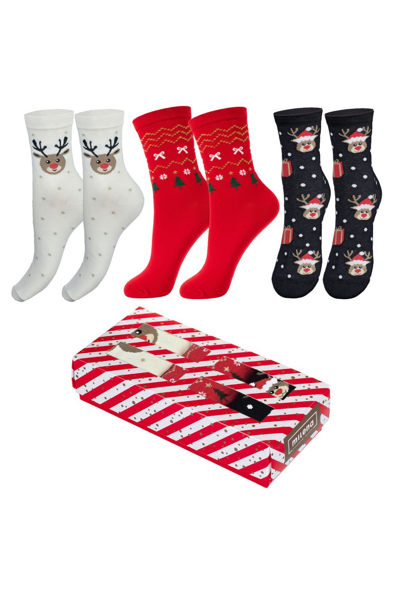 Jõululiste naiste sokkide komplekt karbis, 3 paari
