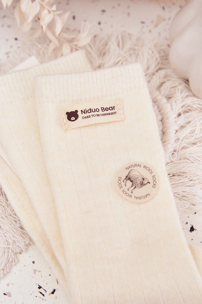 Soojad linased naiste sokid žakaarmustriga elevandiluust värviga