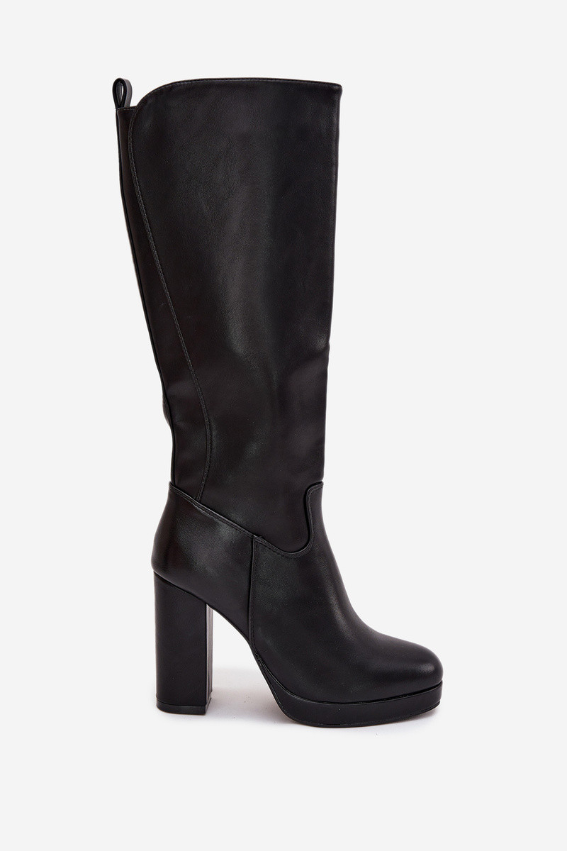 Naisten põlvini ulatuvad saapad kreenidega, ökonnahast, musta värvi Thalina