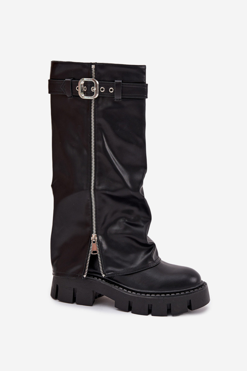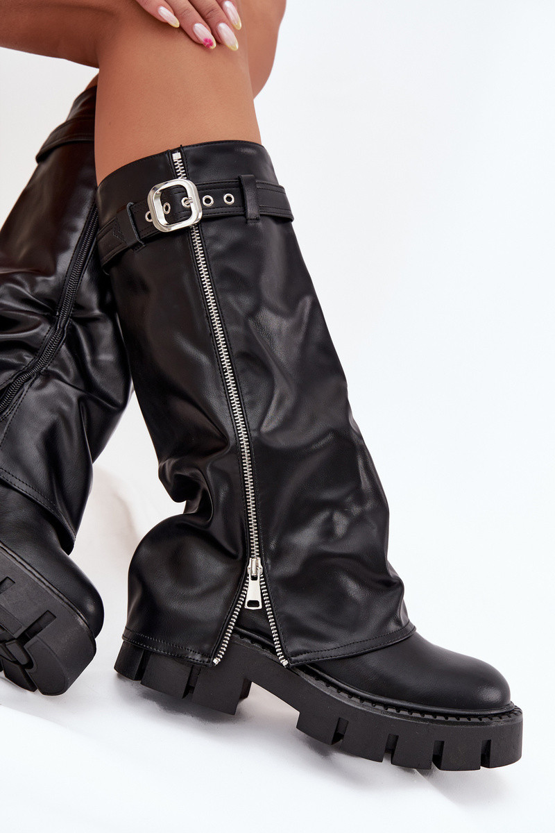 Mustad sooja voodriga kõrged saapad sisseehitatud choleikaga, kinnitustega ja hõbedase lukuga Armena