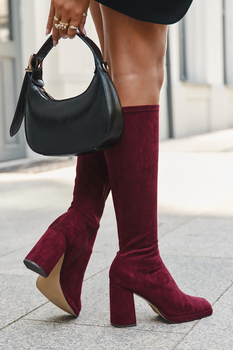 Naise pikad saapad õmblustega postkontsa burgundi värvi "Brivana"