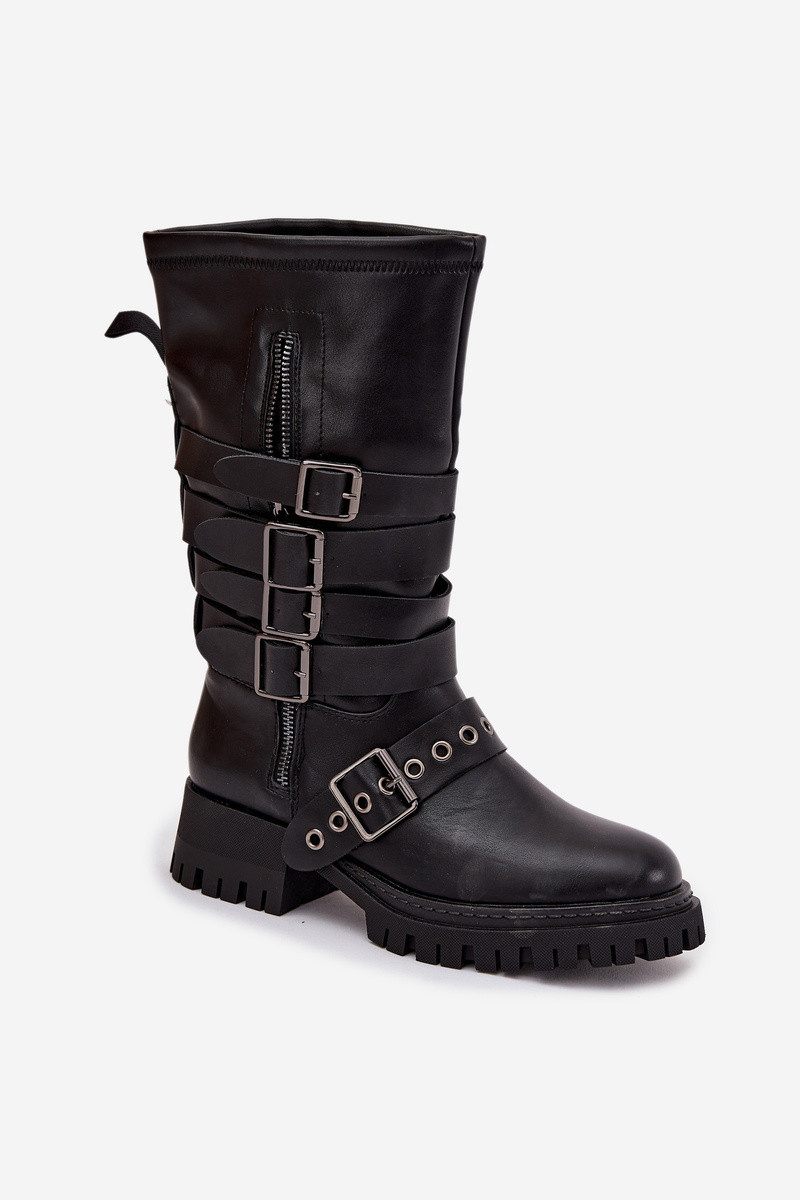 Must värv sooja voodriga naiste pikad saapad rihmade ja pandlitega „Ivaline"